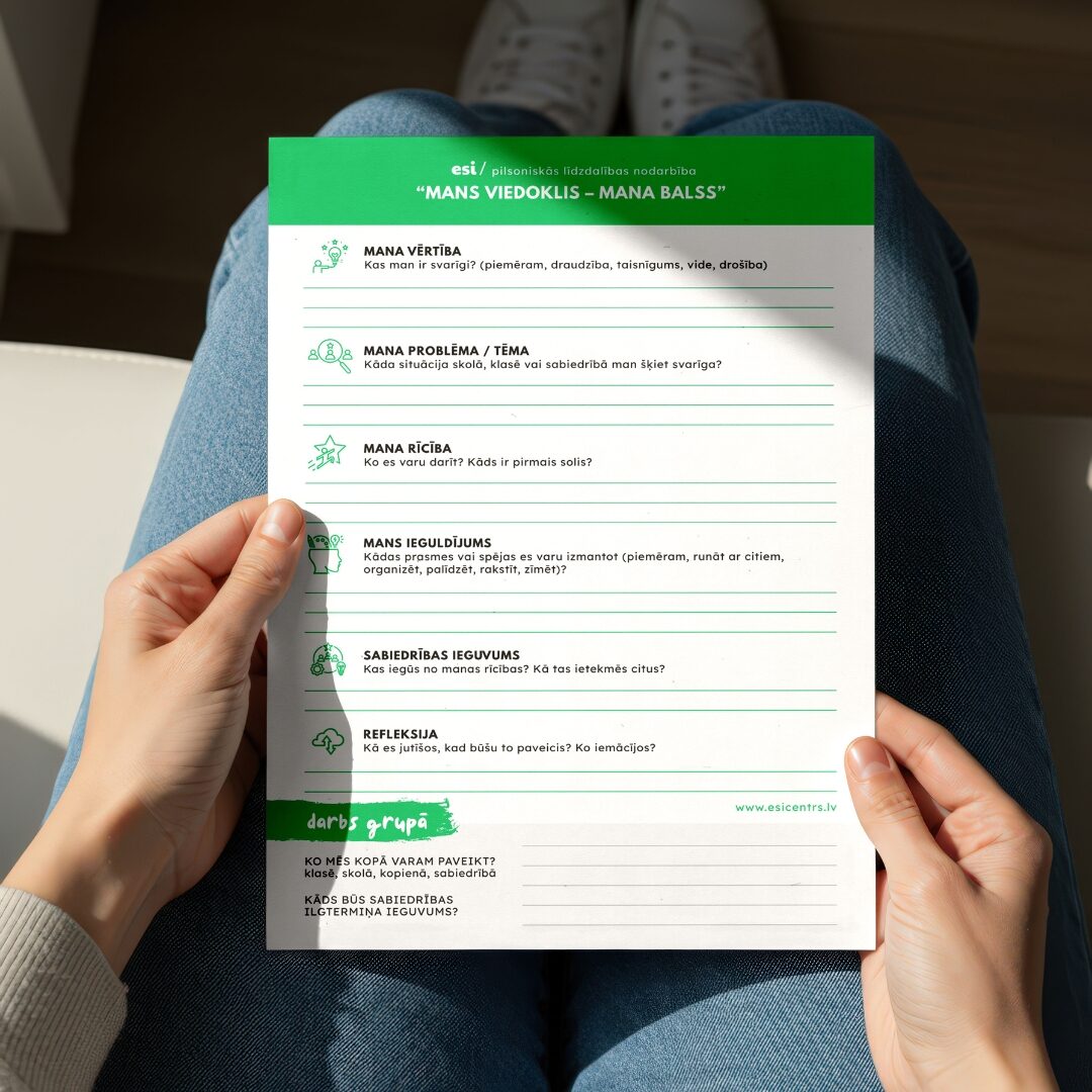 Pilsoniskā līdzdalība sākas ar sevis apzināšanos – bērns, kurš prot atpazīt savas emocijas un vadīt rīcību, spēj būt atbildīgs klasesbiedrs, sabiedrības loceklis un nākotnē – aktīvs pilsonis.